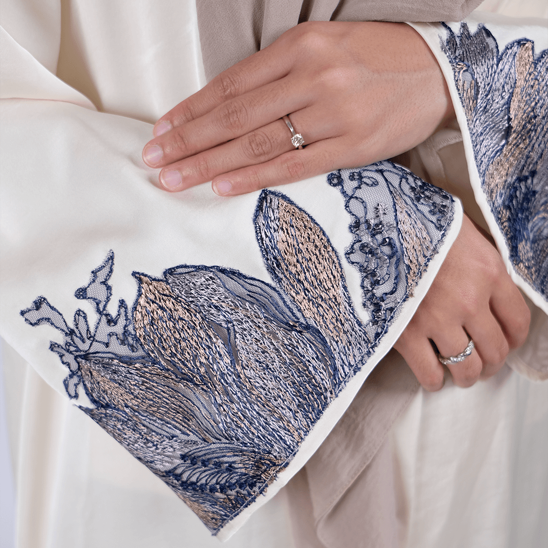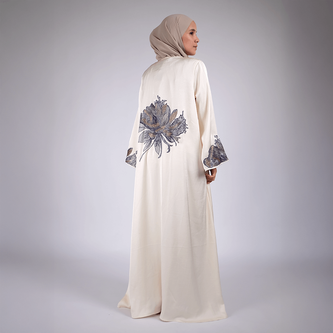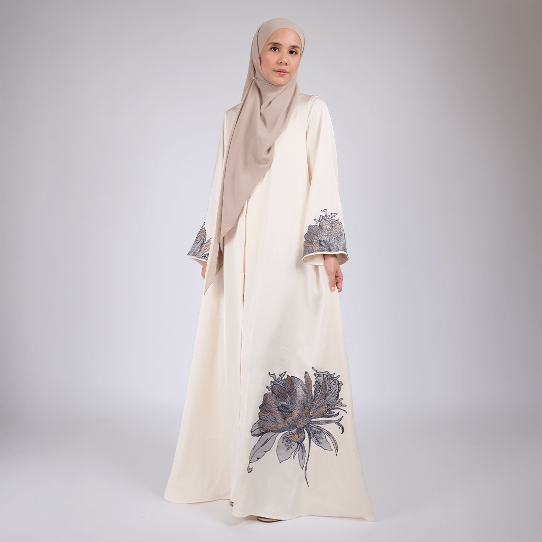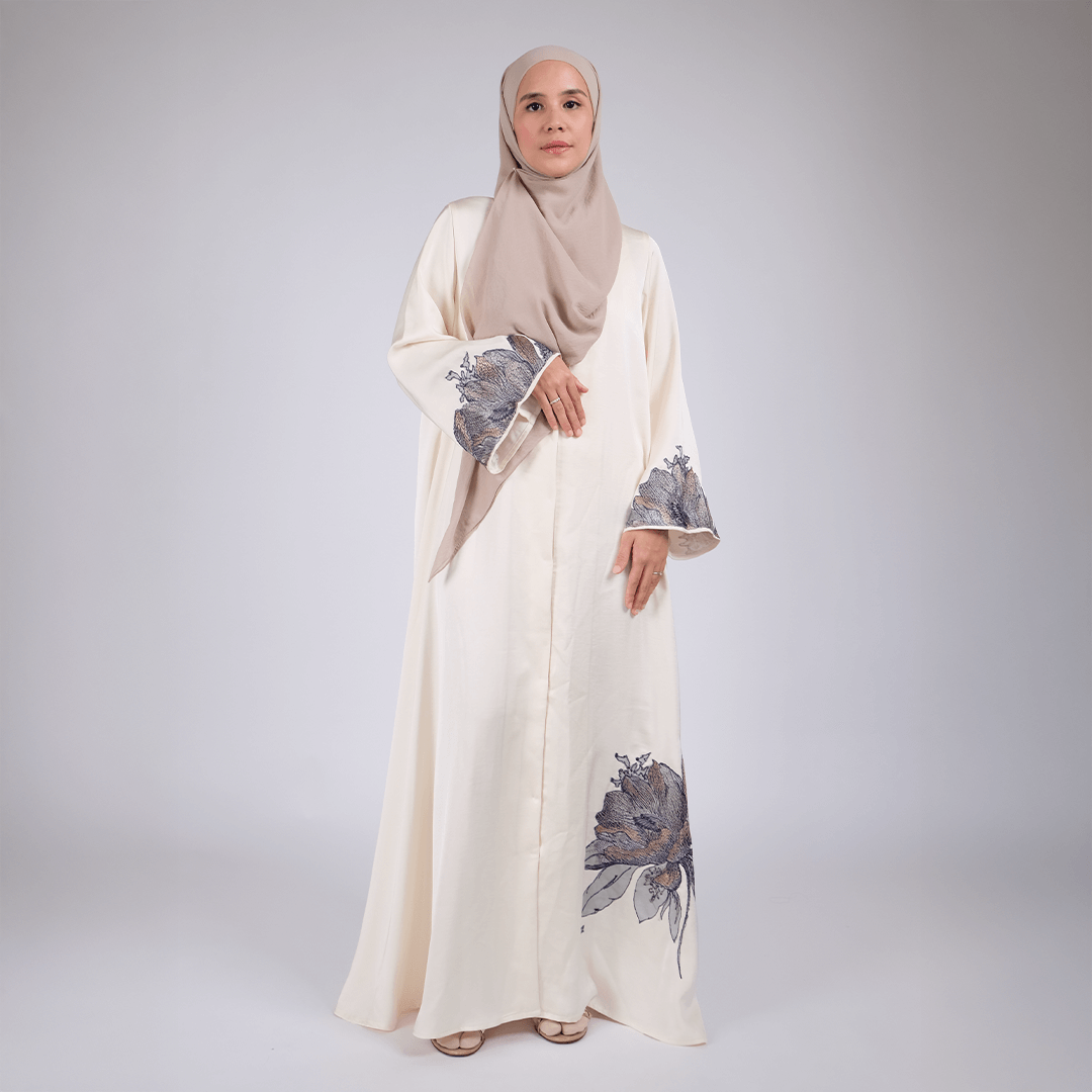 Safiyya in Ivory Fabric: heavy silk in ivory tone, breathable and elegant Detail: Hand embroidery, intricately crafted for a luxe finish Model: Rounded neckline with front buttons, available in S/M & L/XL sizes